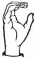 На ћирилици написано БОГДАН СЕКУЛОВ састоји се из 13 слова [?]. Исписано ћириличном једноручном азбуком за глувонеме: